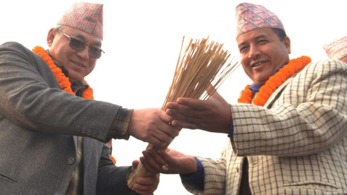 पूर्वमन्त्री एवं सांसदद्वय महेश बस्नेत र सांसद प्रेम सुवाल, प्रदेश नं ३ का सांसद शशीजङ्ग थापा, मध्यपुरथिमि नगरपालिकाका प्रमुख मदनसुन्दर श्रेष्ठलगायत जनप्रतिनिधि र सफाई अभियन्ताहरूलाई कुचो, डोको, साबेल, माक्स, पञ्जालगायत सामग्री प्रदान गरिएको थियो ।