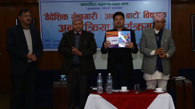 अन्तर्राष्ट्रिय आप्रवासन दिवस २०१८ का अवसरमा आज वैदेशिक रोजगार प्रवद्र्धन बोर्डको सचिवालयले आयोजना गरेको ‘वैदेशिक रोजगारीः अबको बाटो’ विषयक अन्तक्र्रिया कार्यक्रममा उहाँले भन्नुभयो, “अझै पनि वैदेशिक रोजगारीका क्षेत्रमा विकृति, विसङ्गति र अपारदर्शीता छन्, अब यस्तो विसङ्गति धेरै दिन रहँदैन, पसिना बगाउने श्रमिक अपमानित बन्नुपर्ने अवस्थाको अन्त्य हुन्छ ।”