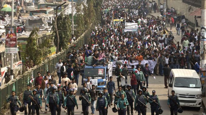 बङ्लादेश, १३ पुस २०७५ । चर्को विवाद, तनाब र हिंसाका बीच बङ्लादेशमा हुन लागेको निर्वाचनका लागि प्रचार प्रसार अभियान बन्द भएको छ ।