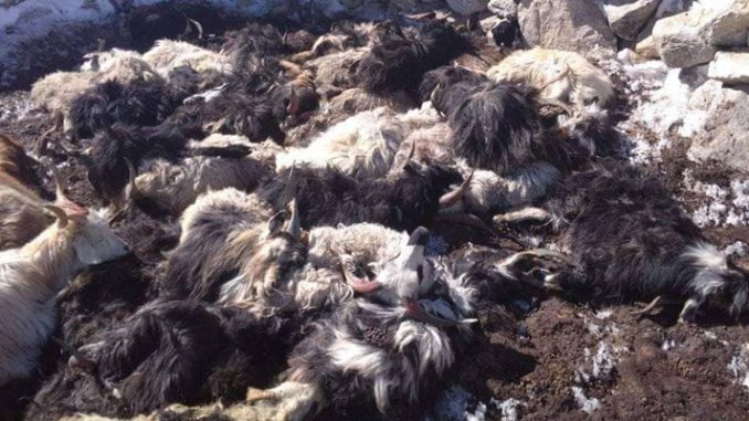 मुस्ताङ, २७ फागुन २०७५ । पछिल्लो एक महीनायताको हिमपातका कारण मुस्ताङमा सयौँ भेडाच्याङ्ग्रा र चौँरीगाई मरेका छन् ।