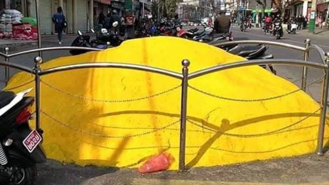 कास्की, ८ चैत २०७५ । पोखराको प्रमुख वजार क्षेत्र चिप्लेढुङ्गालाई चिनाउन मद्दत पुर्याएको चिप्लेढुङ्गाको ‘ढुङ्गा’माथि पहेँलो रङ पोतिएको छ । रङ दलिएपछि सम्पदामाथि अतिक्रमण गरिएको भन्दै त्यसको विरोध भएको छ ।